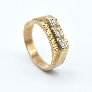 Bague en or jaune et blanc 10 ct sertie de 3 diamants taille 8/8 +/- 0.03 ct - 4.6 g (Taille: 58.5)