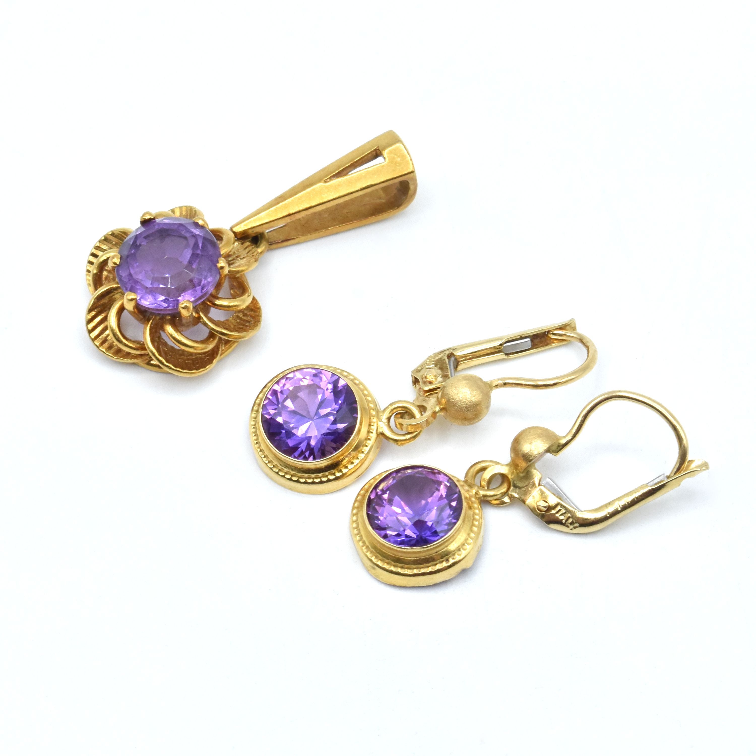 Pendentif et 2 boucles d'oreilles en or jaune 18 ct (pierres de couleur) - 7.3 g brut