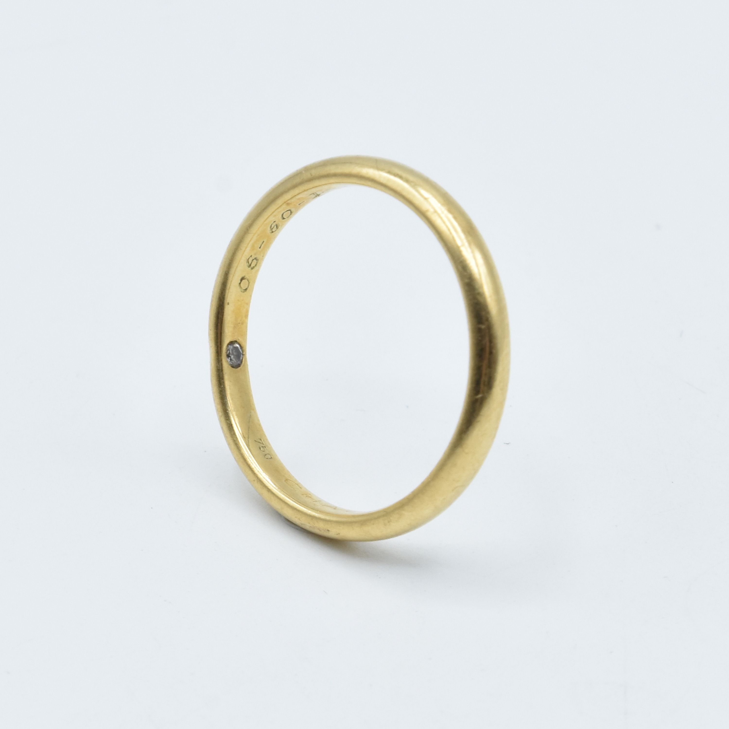 Alliance en or jaune 18 ct sertie d'1 brillant +/- 0.02 ct signée CHAUMET "Les Eternelles - Rubans" (gravée) - 4.4 g (Taille: 60)