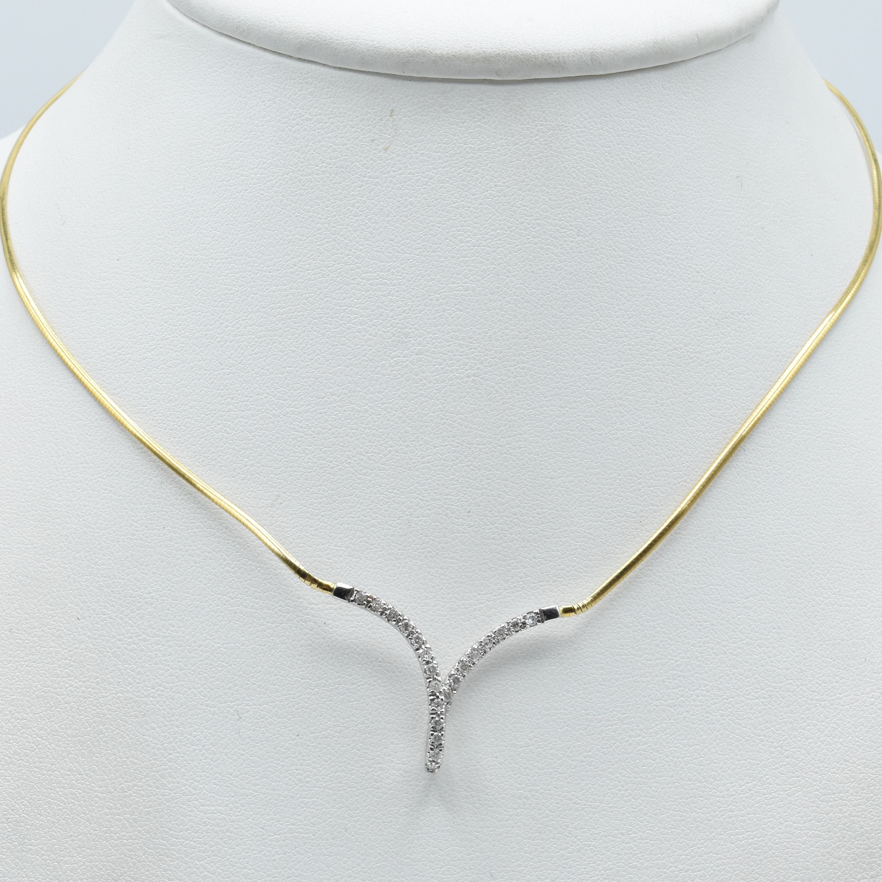 Collier en or jaune et blanc 18 ct serti de 22 brillants +/- 0.40 ct (abîmé) - 7.1 g (43 cm)