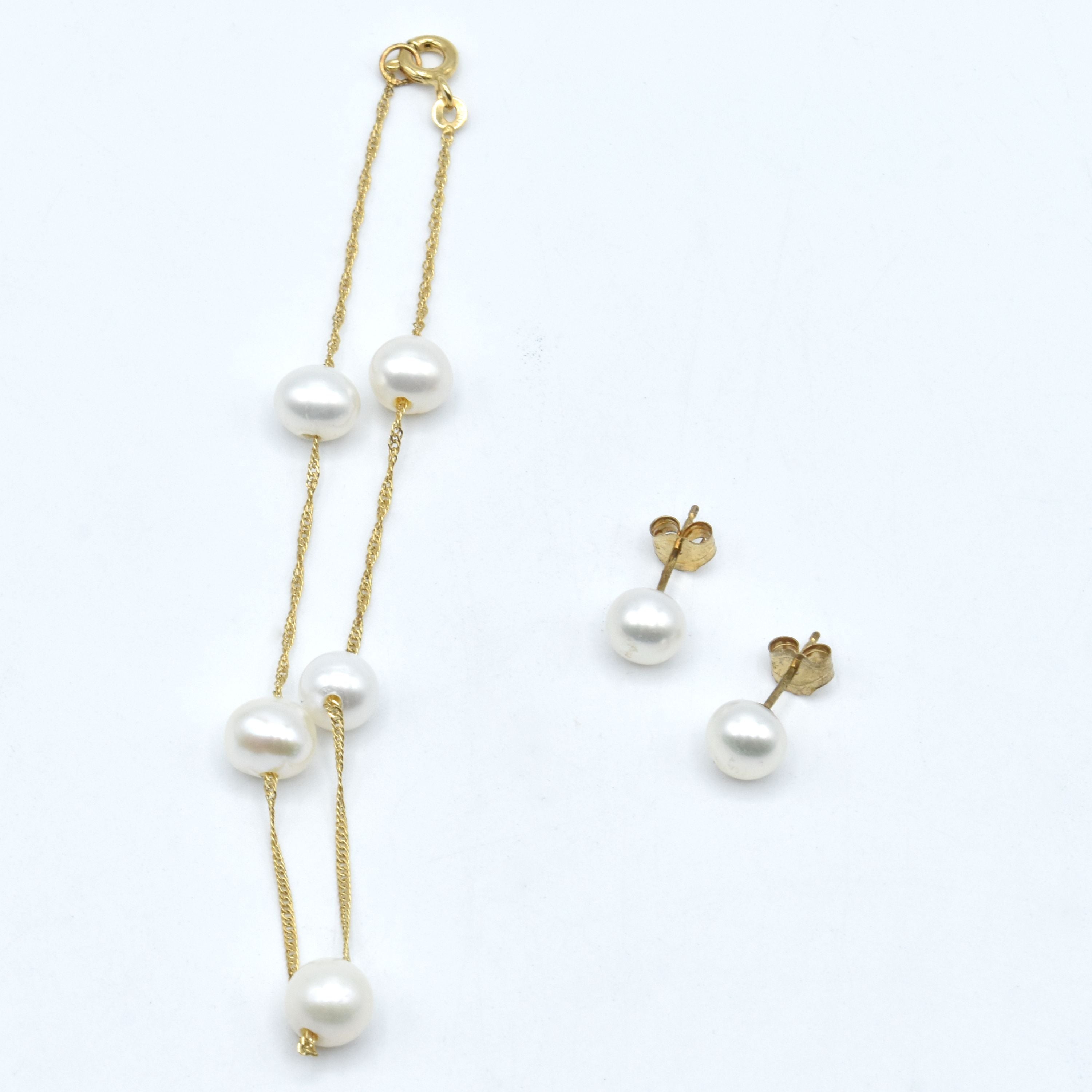 Bracelet et 2 boucles d'oreilles en or jaune 9 ct (perles) - 2.8 g brut (18 cm)