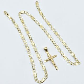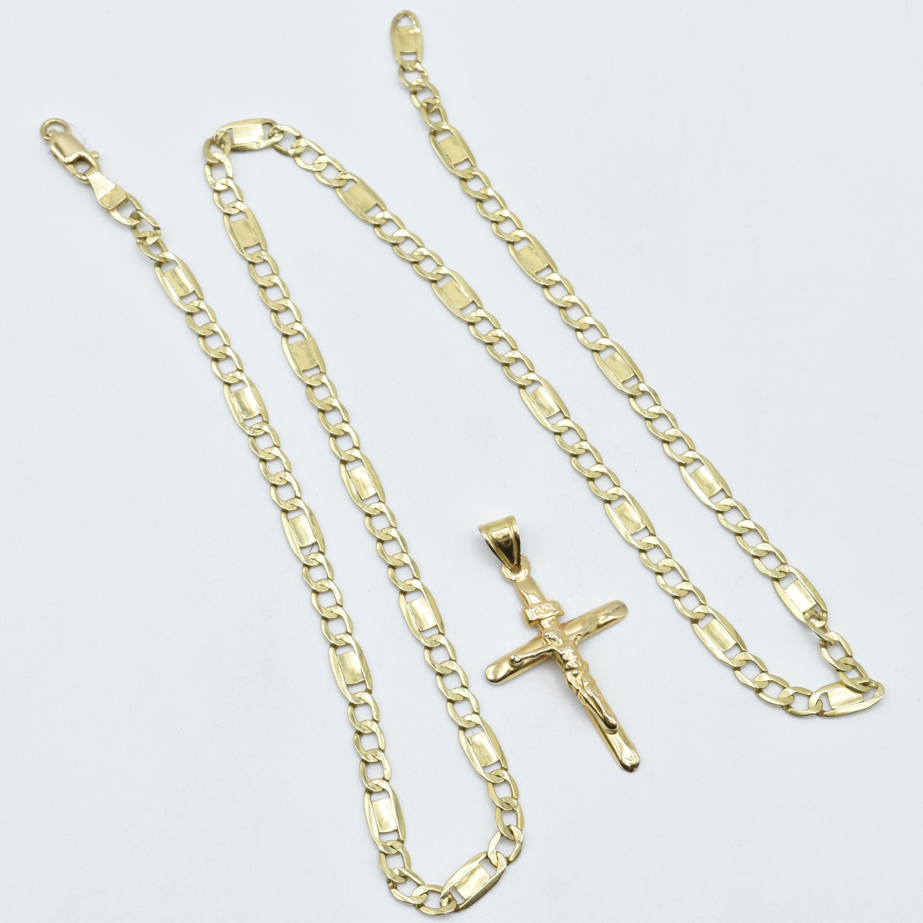 Collier et croix en or jaune et blanc 18 ct (légèrement bosselée, cassé, partie manque) - 7.5 g (50 cm)