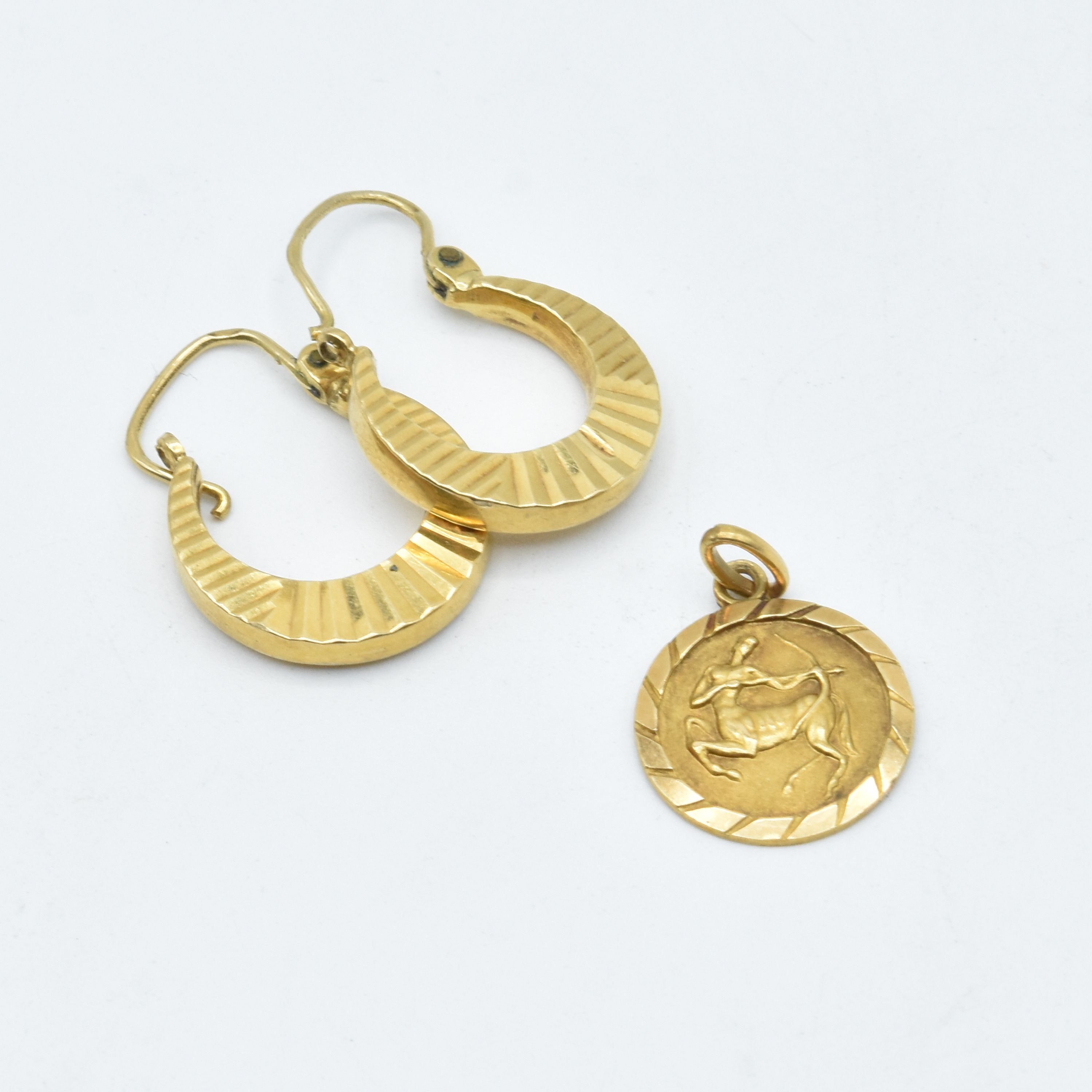 Pendentif et 2 boucles d'oreilles en or jaune 18 ct (abîmés, bosselés) - 3.6 g