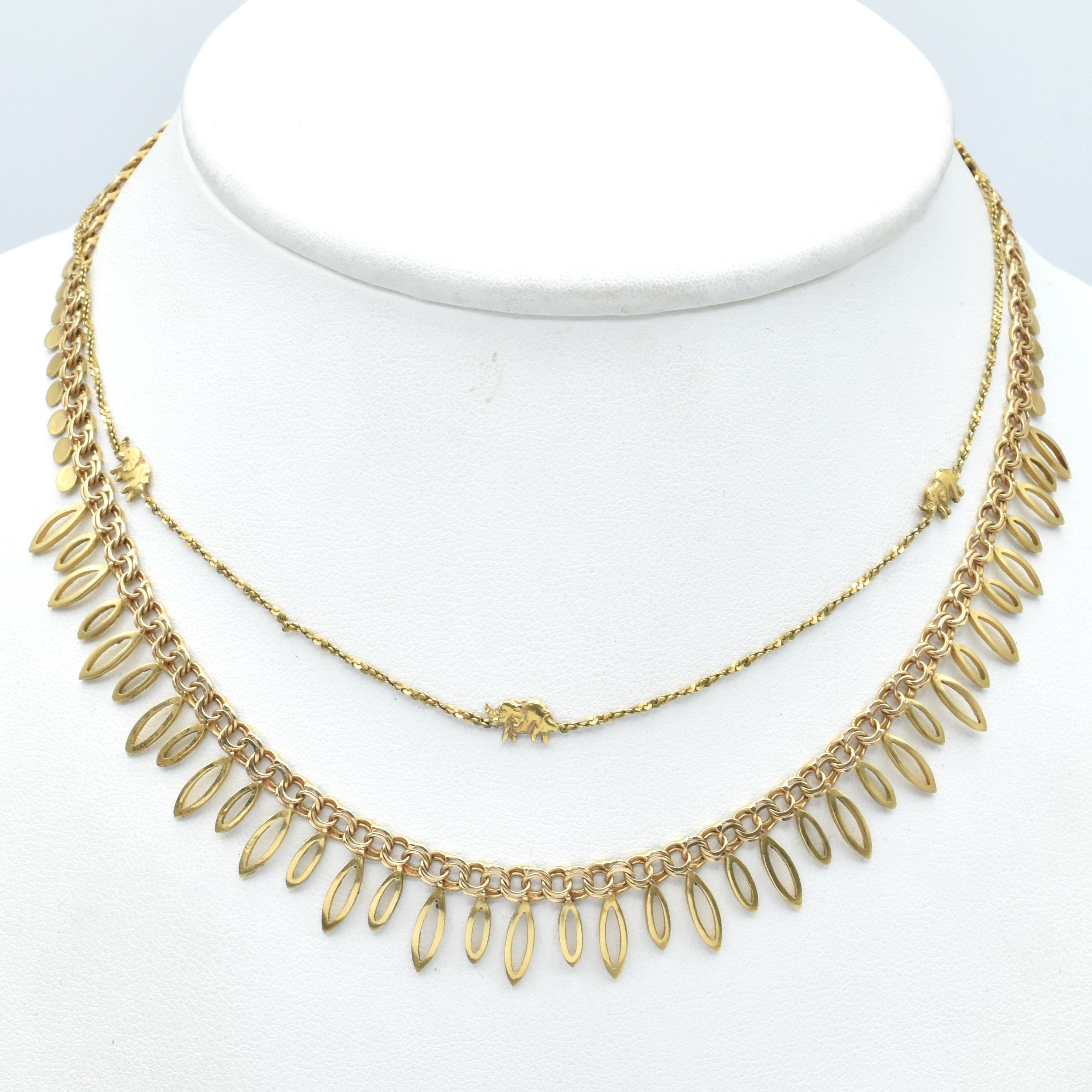 Collier en or jaune 14 ct (abîmé) - 15 g Collier en or jaune 18 ct (abîmé) - 3.7 g (39 & 39.5 cm)