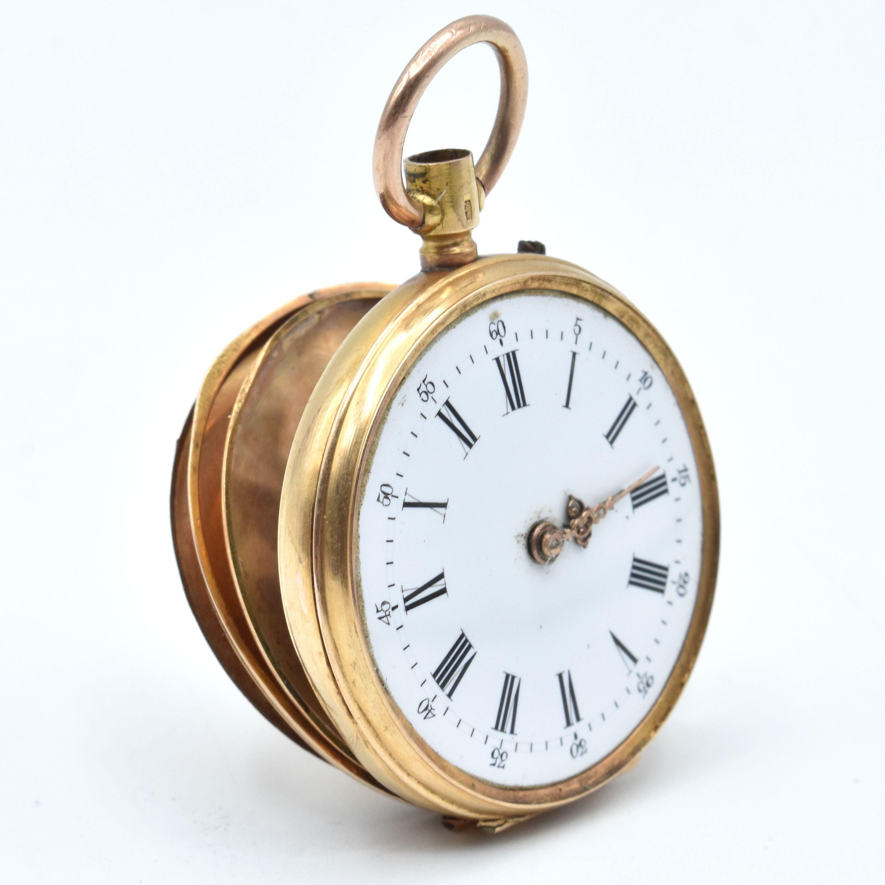 Montre de poche en or jaune 18 ct à 2 cuvettes (déréglée, verre et remontoir manquent, cuvette cassée) - 21.4 g brut