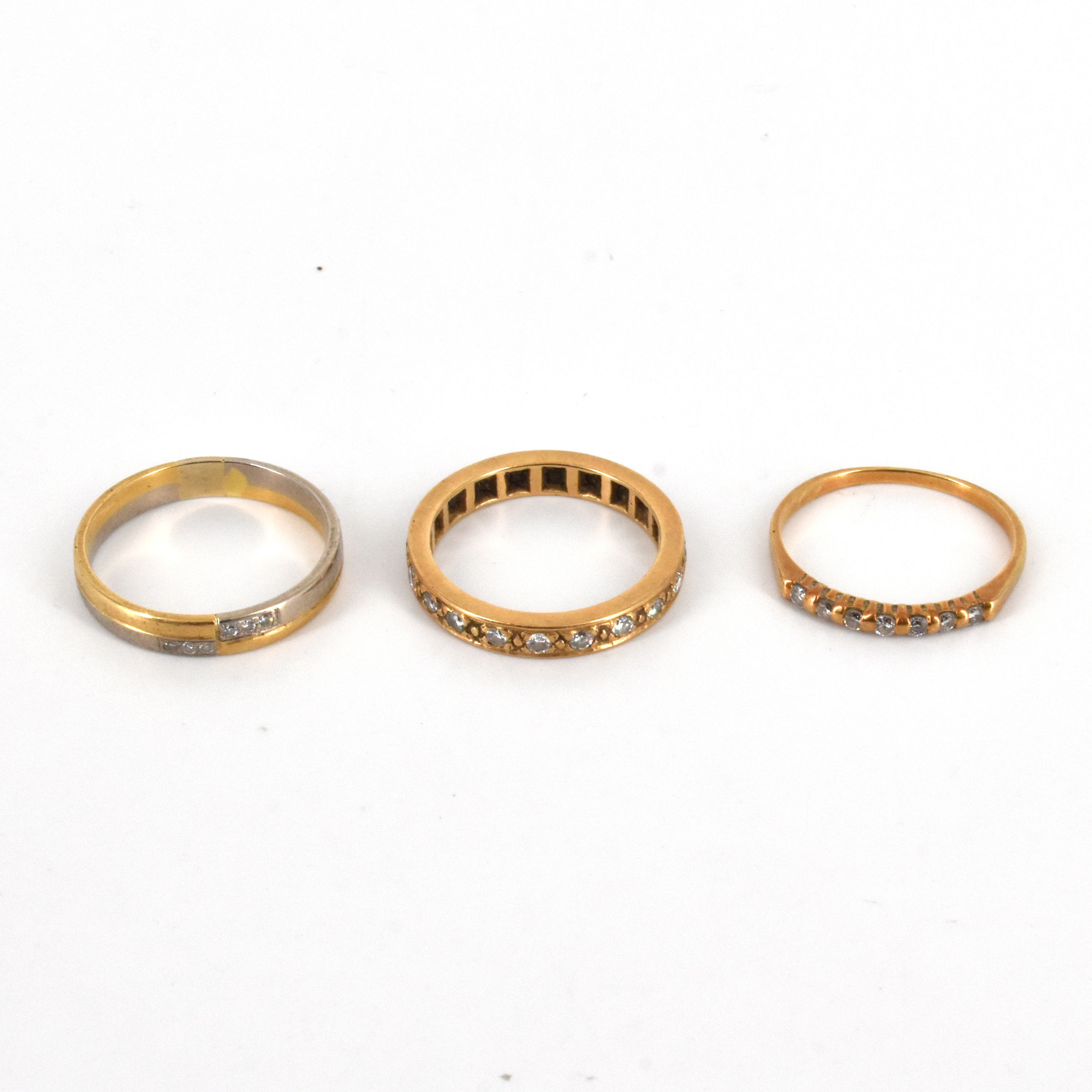 Bague en or blanc 18 ct et platine sertie de 3 diamants taille ancienne 0.40 ct et 2 x 0.22 ct - 9.4 g (Taille: 54)
