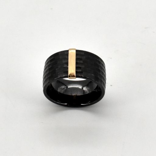 Bague en céramique noire avec partie en or jaune 18 ct signée DE GREEF (griffée) (Taille: 60)