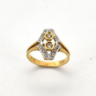 Bague en or jaune et blanc 18 ct sertie de 2 brillants +/- 0.08 ct et 12 diamants taille 8/8 +/- 0.12 ct - 3.7 g (Taille: 49)
