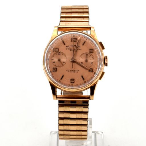 Bracelet-montre homme en or jaune 18 ct ULTIMOR mécanique (bracelet FIXOFLEX en plaqué or, aiguilles usées, cadran abîmé, pièces pas d'origine)