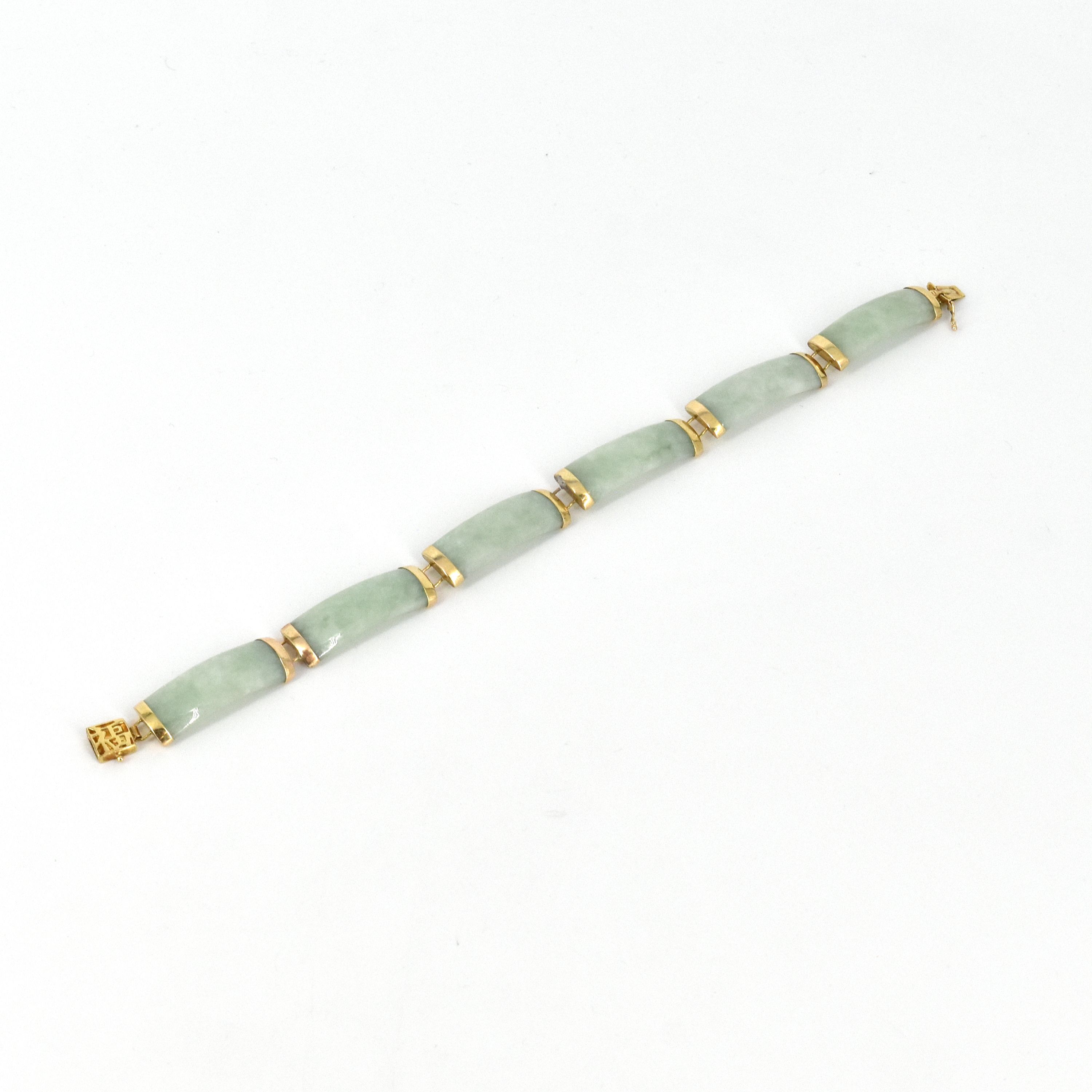 Bracelet en or jaune 14 ct serti de jade (abîmé, maille déssoudée) - 13.1 g brut (18 cm)