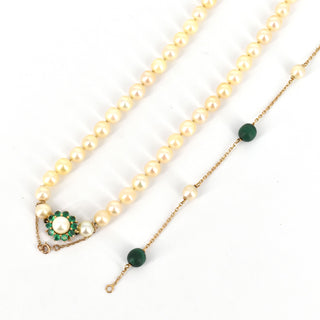 Collier de perles avec fermoir en or jaune 18 ct (pierres de couleur, perles abîmés) - (51.5 cm) Bracelet en or jaune 18 ct serti de 2 perles et 3 malachites (abîmé) - 5.4 g brut (19 cm)