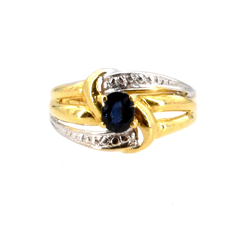 Bague en or jaune et blanc 18 ct (pierre de couleur) - 2.5 g brut (Taille: 56)