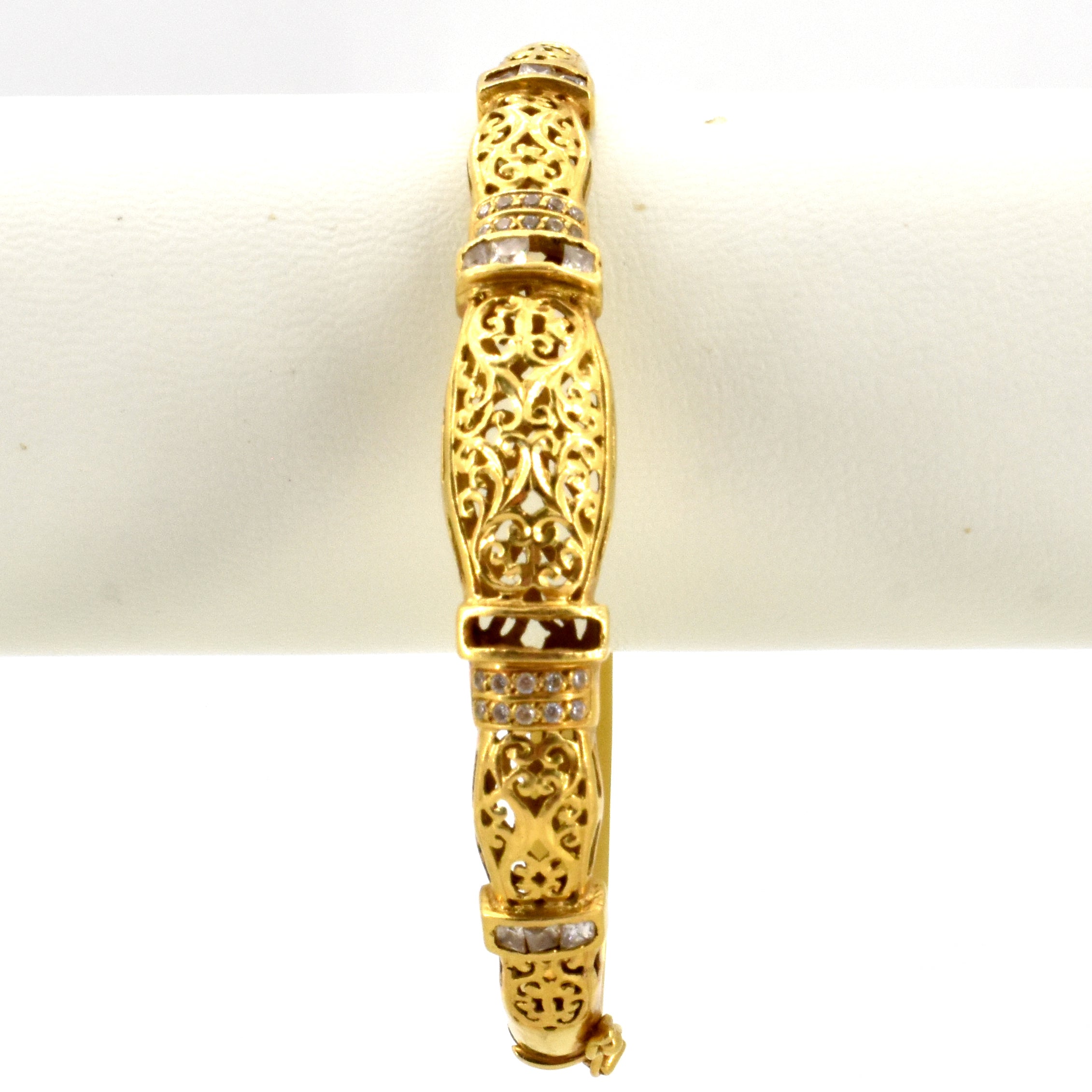 Bracelet rigide en or jaune 18 ct (pierres fausses, pierres manquent, bosselé) - 20.6 g brut (7 x 6 cm)