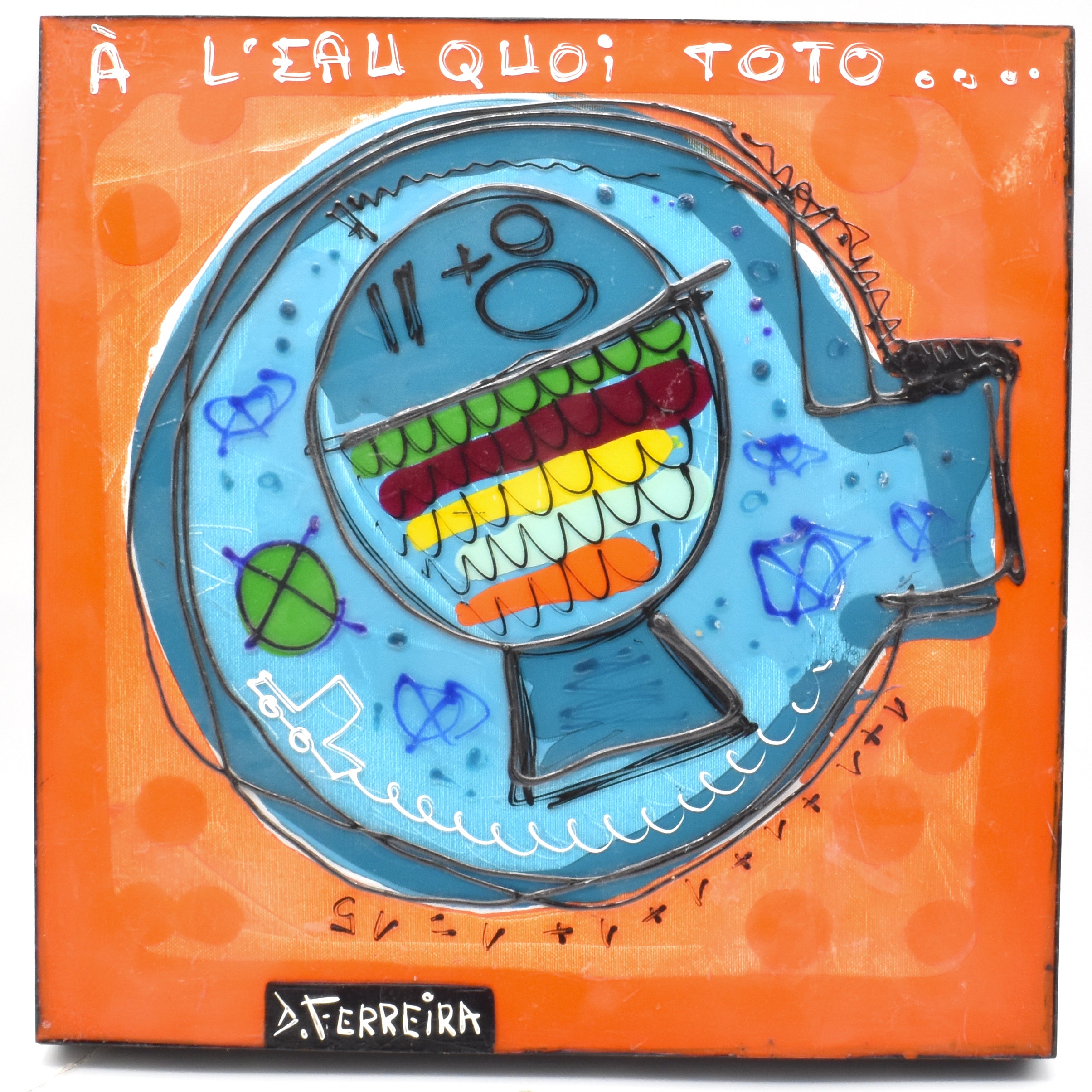 Technique mixte sur toile signé David FEREIRRA : "A l'eau quoi Toto!" (légèrement abimé)