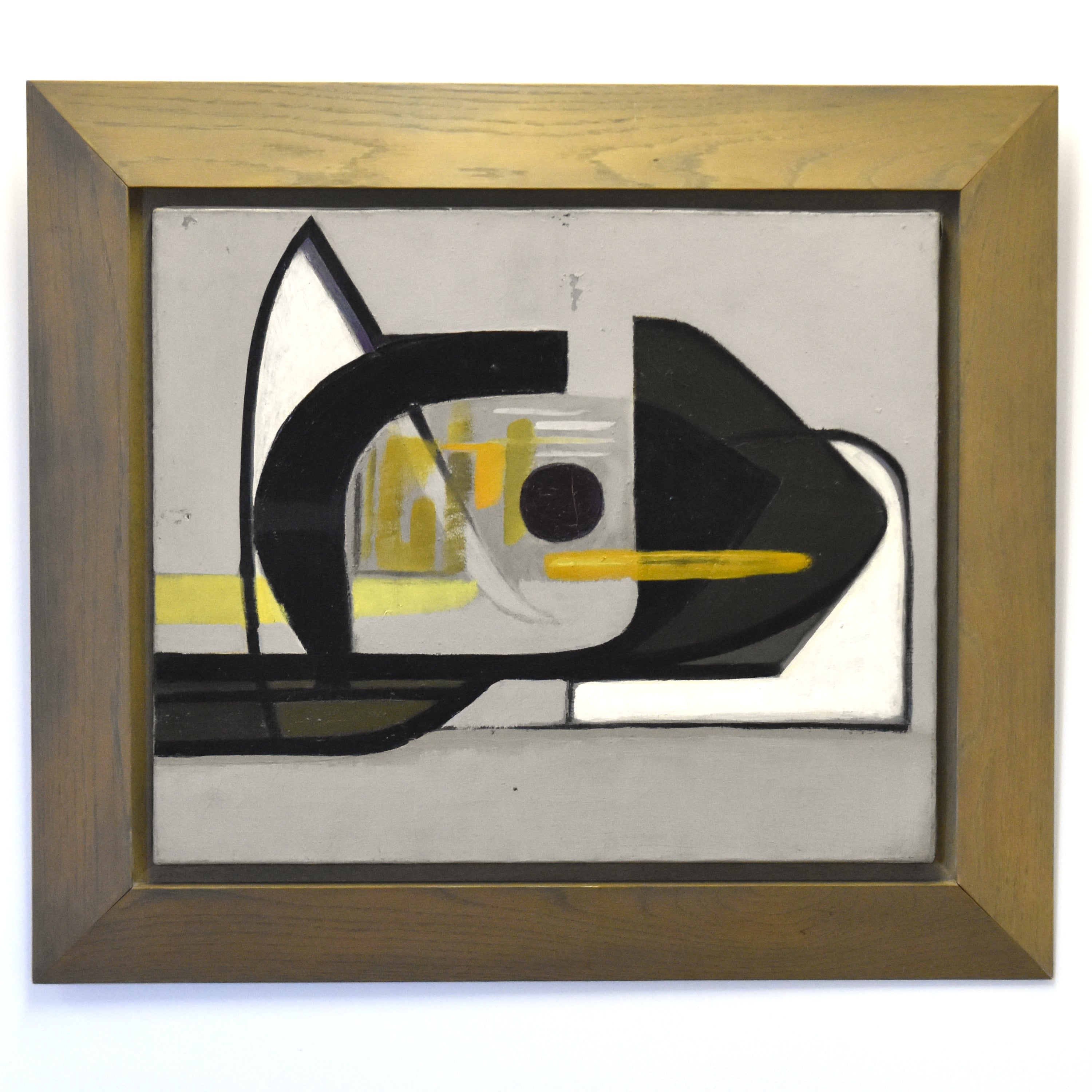 Huile sur toile signée PIAUBERT: Composition abstraite (peinture manque, abîmée) (61 x 50 cm)