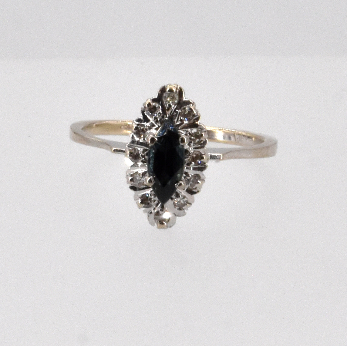 Bague en or blanc 18 ct sertie de 12 diamants taille 8/8 +/- 0.12 ct et 1 saphir - 2.7 g (Taille: 52)