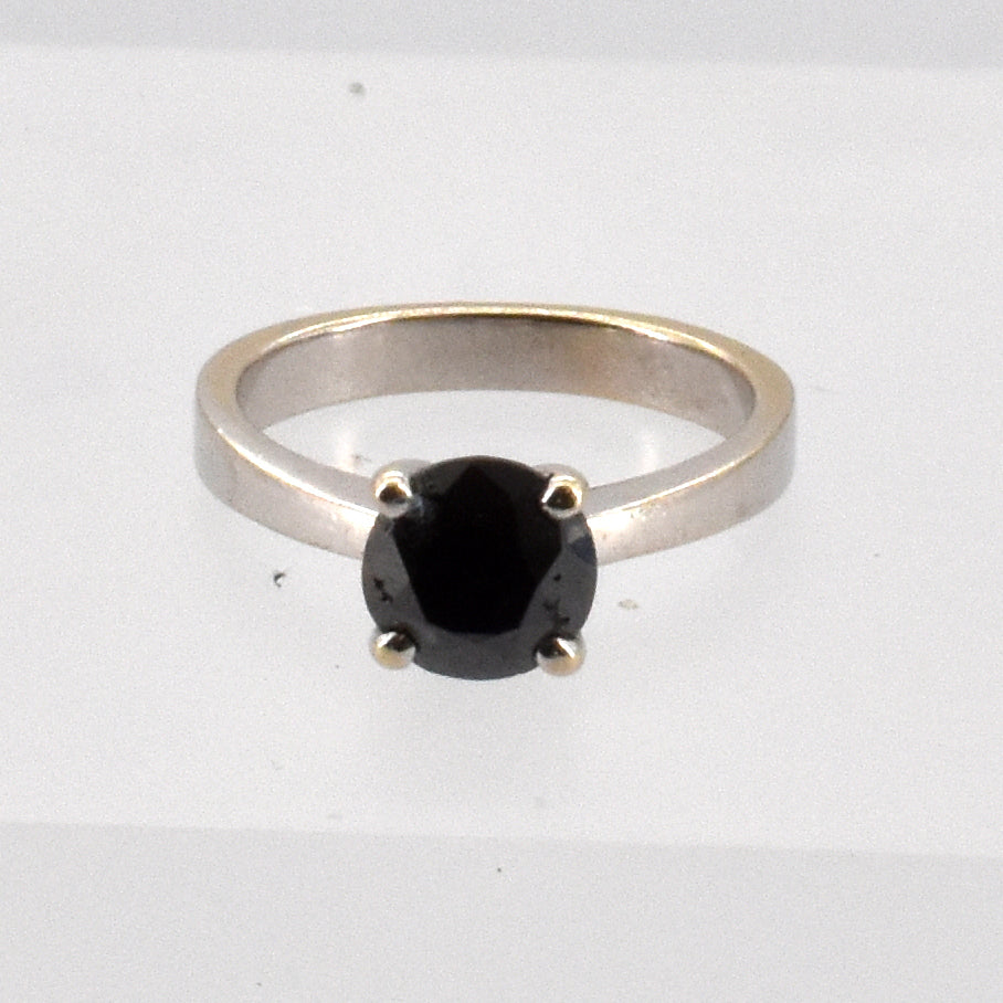 Bague en or blanc 18 ct sertie d'1 diamant noir - 5.2 g (Taille: 54)