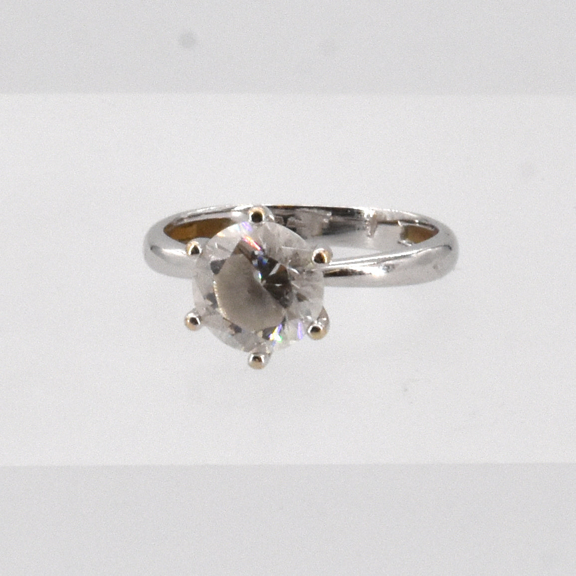 Bague en or blanc 18 ct sertie d'1 zircon - 3.4 g ( Taille: 52) + certificat