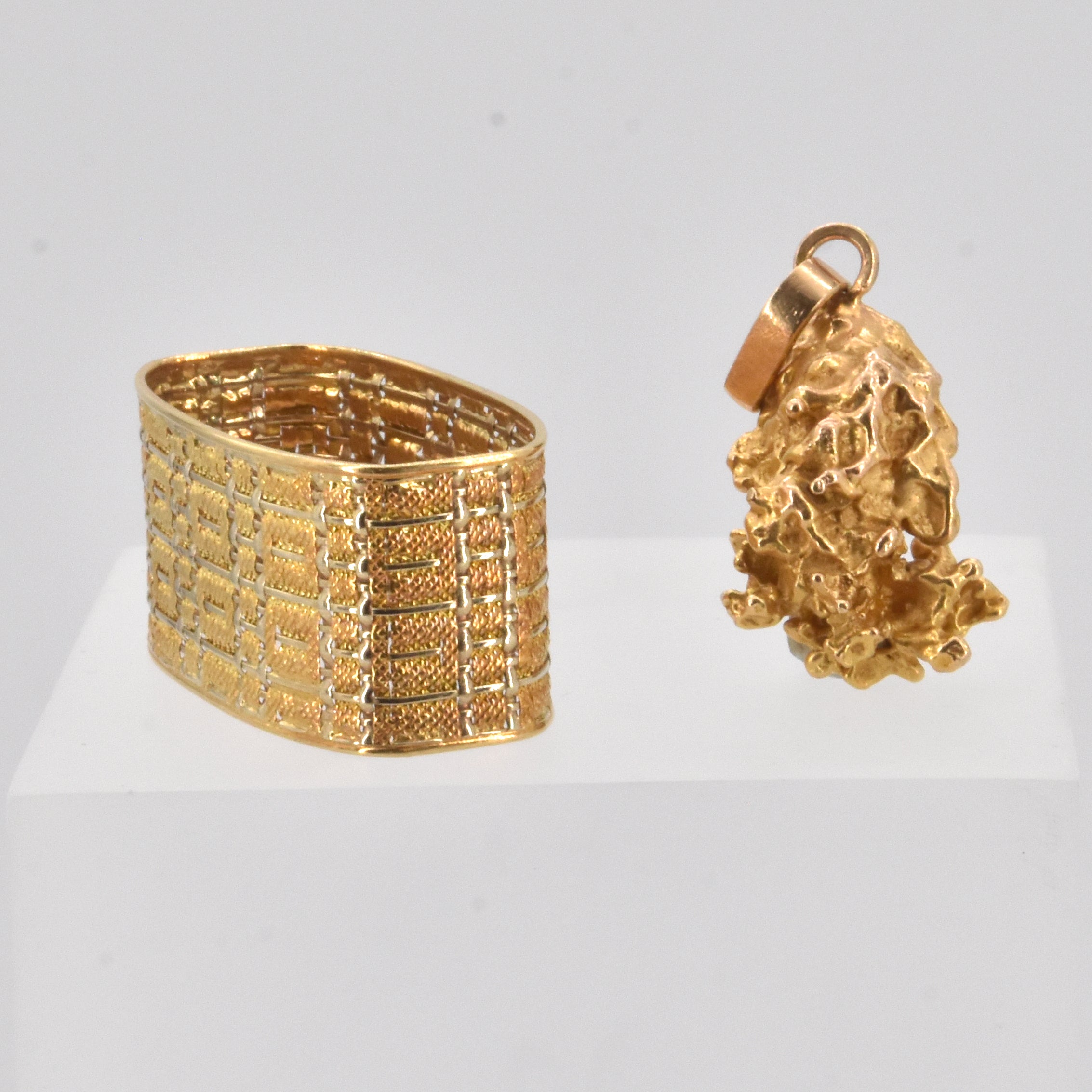 Rond de serviette en or jaune et blanc 18 ct - 11.2 g Pendentif en or jaune 18 ct avec partie en or jaune 14 ct - 26.9 g