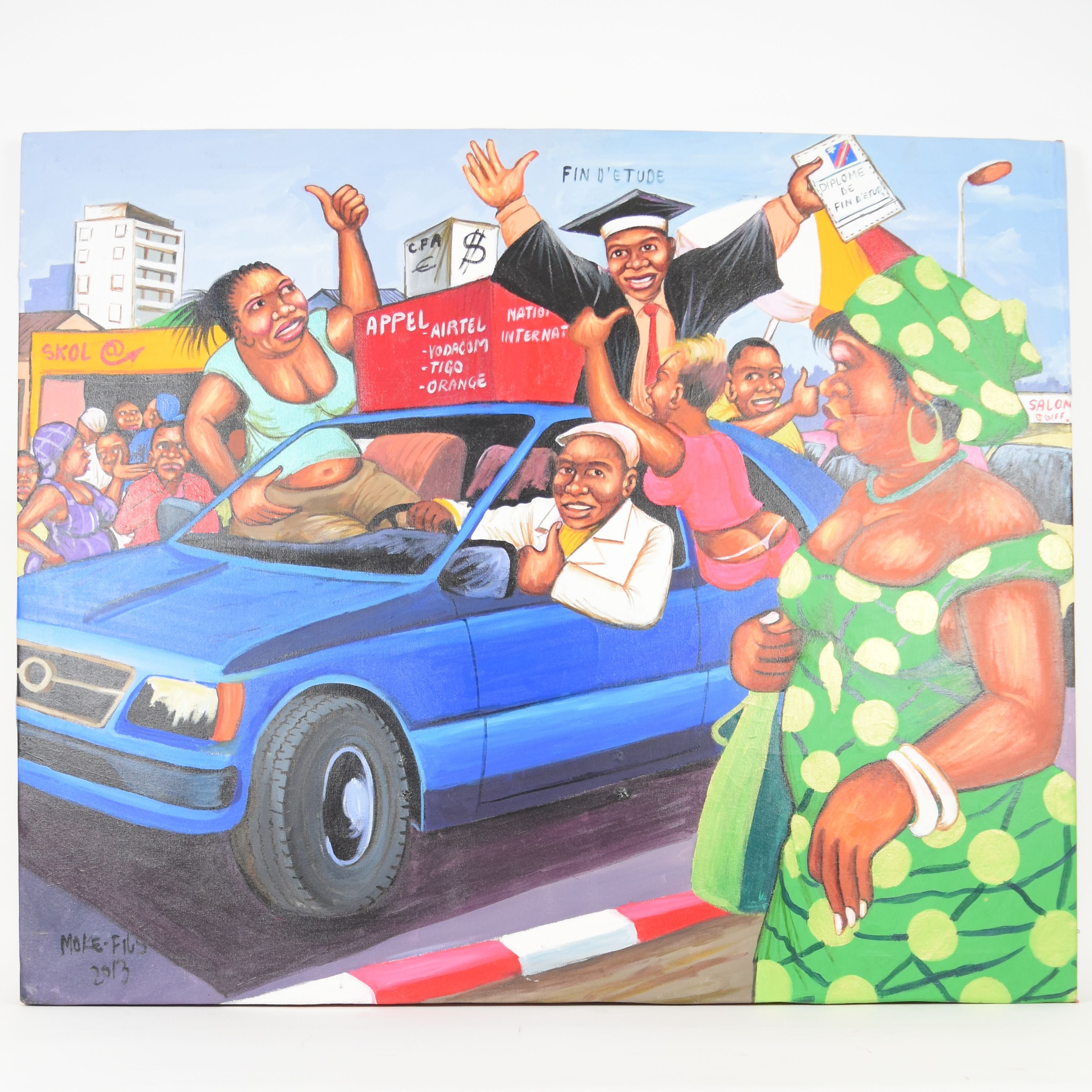 Huile sur toile signée MOKE Fils: "fin d'étude" (107 x 88 cm)