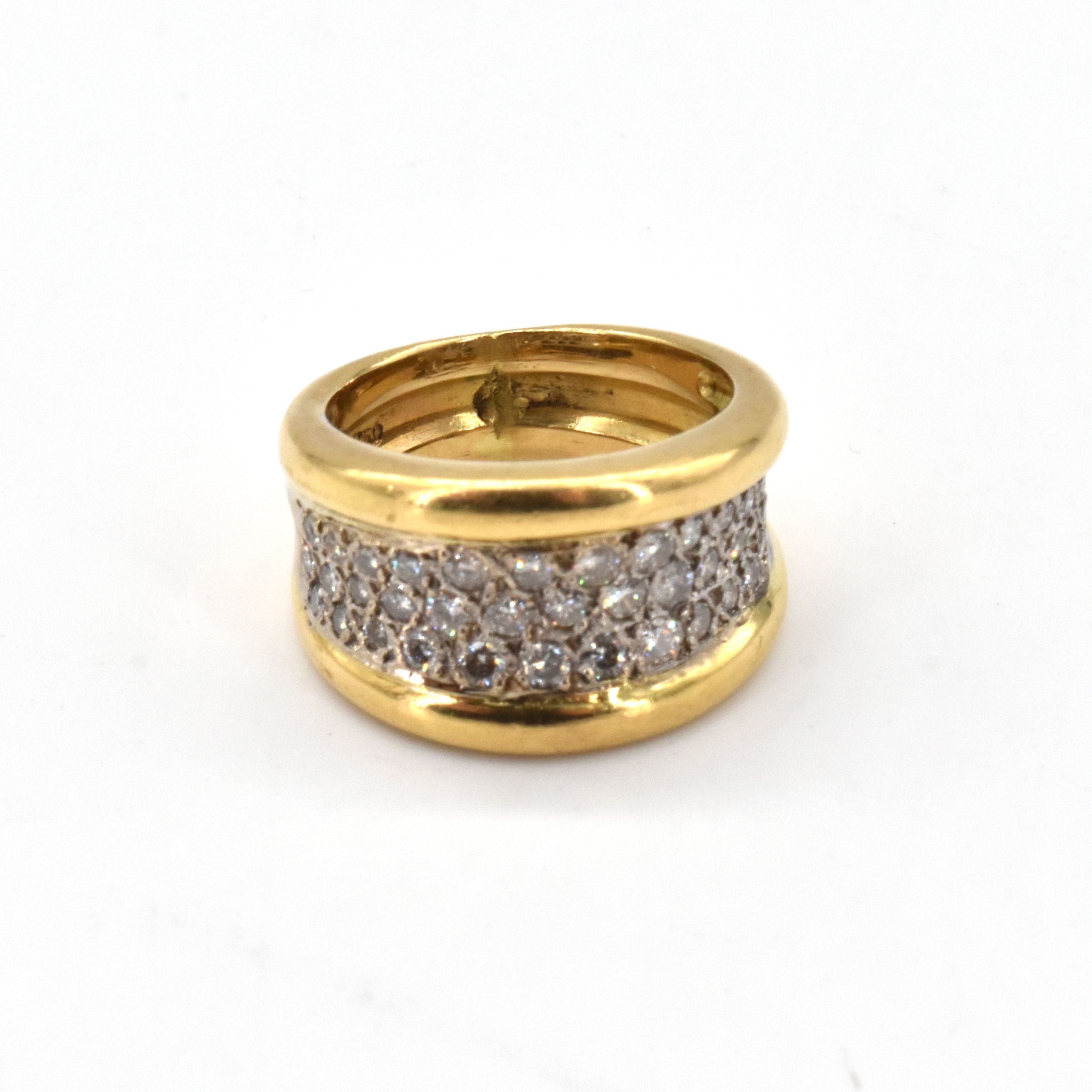 Bague en or jaune et blanc 18 ct sertie de 37 brillants +/- 1.10 ct (pierre ébréchée, abîmée) - 10.1 g (Taille: 49)