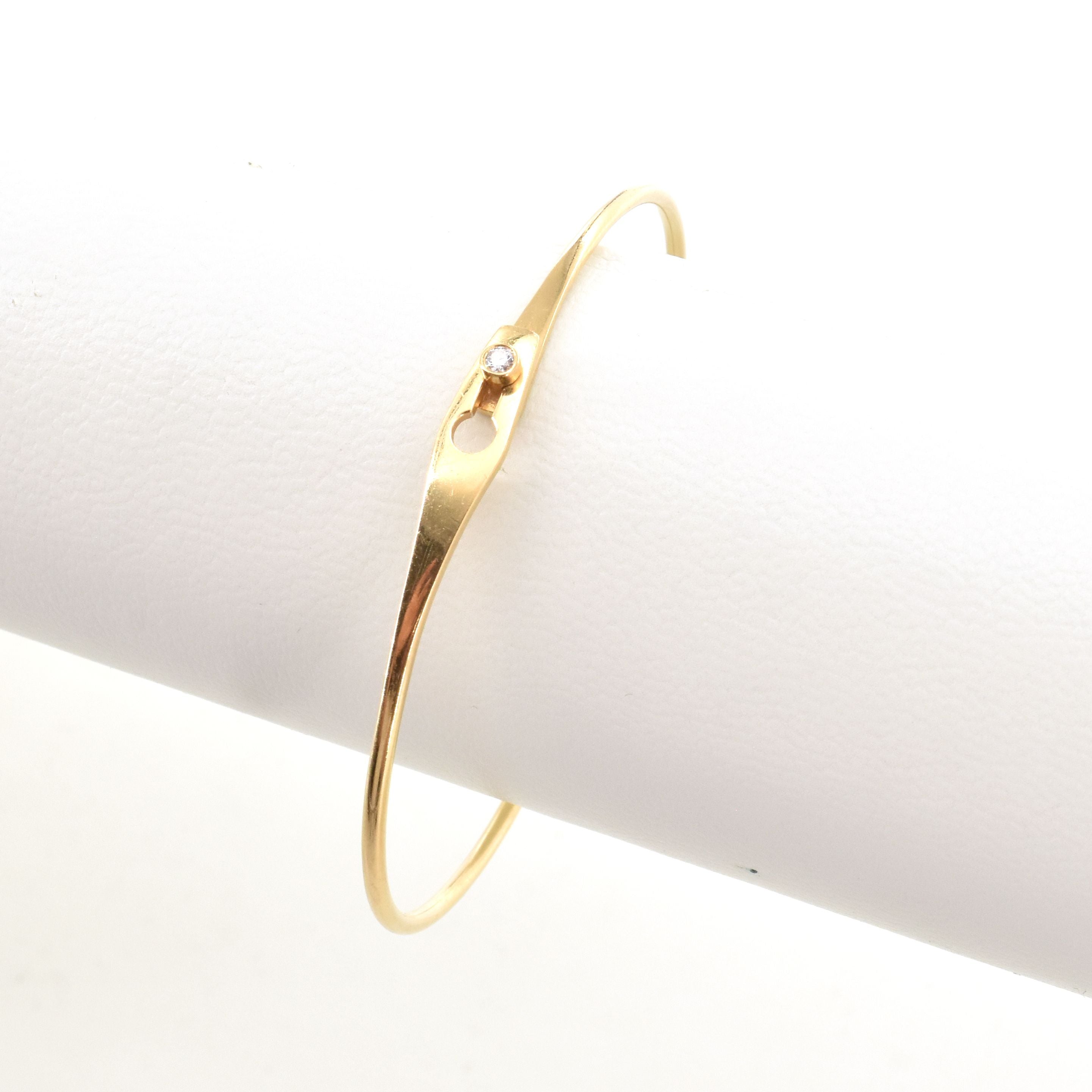 Bracelet rigide en or jaune 18 ct signé DINH VAN serti d'1 brillant +/- 0.05 ct - 6.4 g (15.5 cm) + pochette