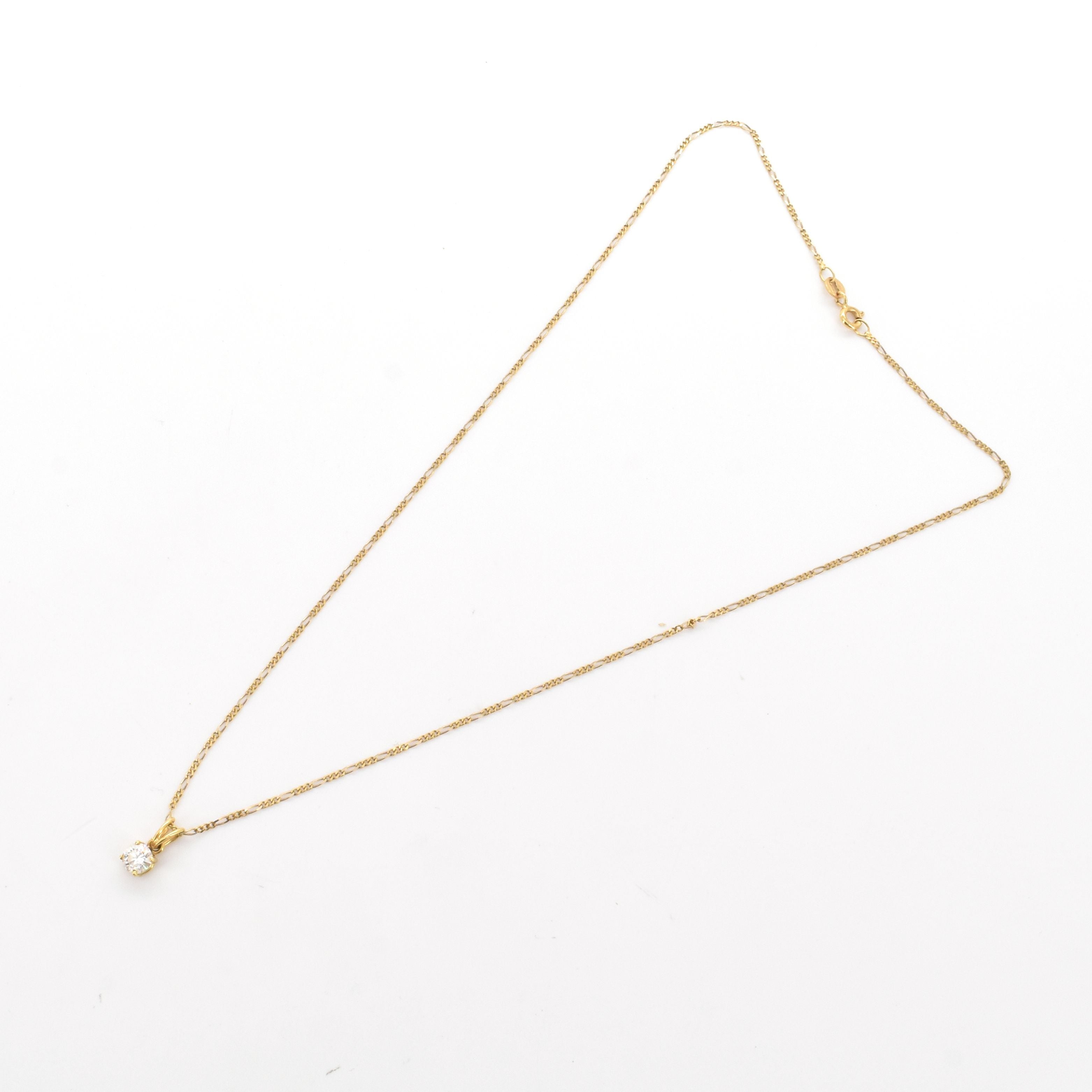 Collier et pendentif en or jaune et blanc 18 ct sertie d'1 diamant synthétique (lab grown) +/- 0.50 ct - 2.8 g (45 cm)