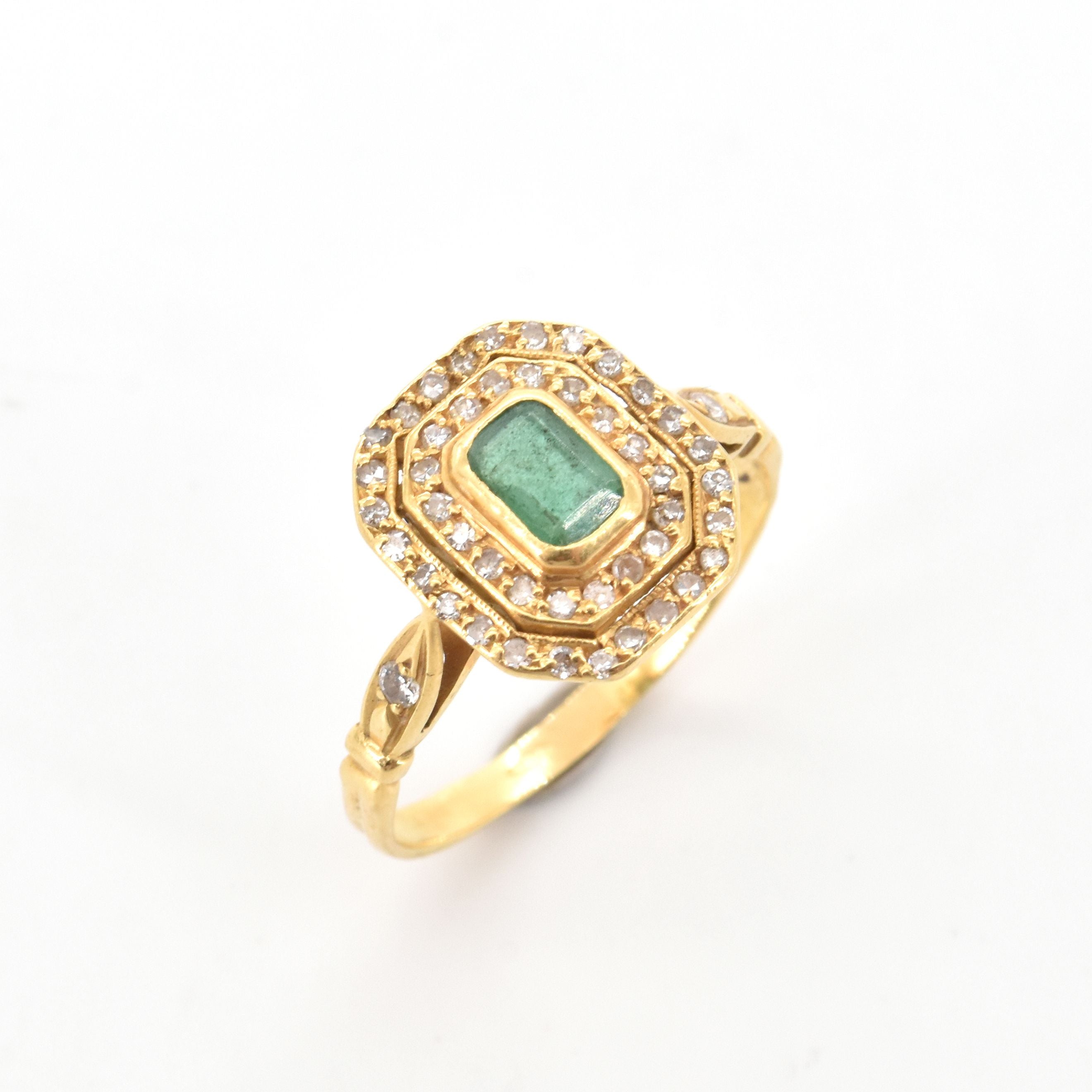 Bague en or jaune 18 ct sertie de 46 diamants taille 8/8 +/- 0.46 ct, 2 brillants +/- 0.04 ct et 1 émeraude - 2.8 g (Taille: 55)