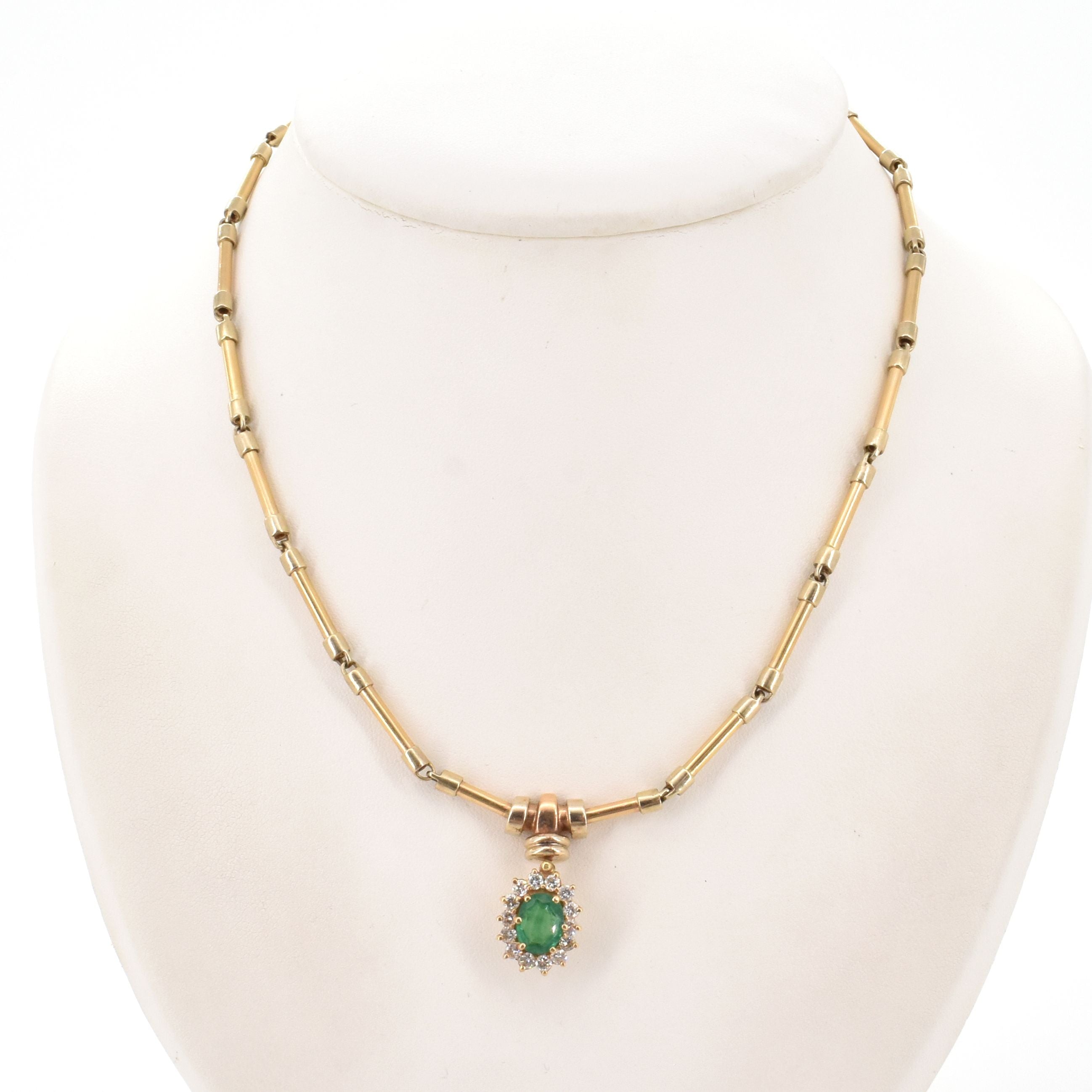 Collier en or jaune et blanc 14 ct serti de 14 brillants +/- 0.85 ct (pierre de couleur) - 19.3 g (43 cm)