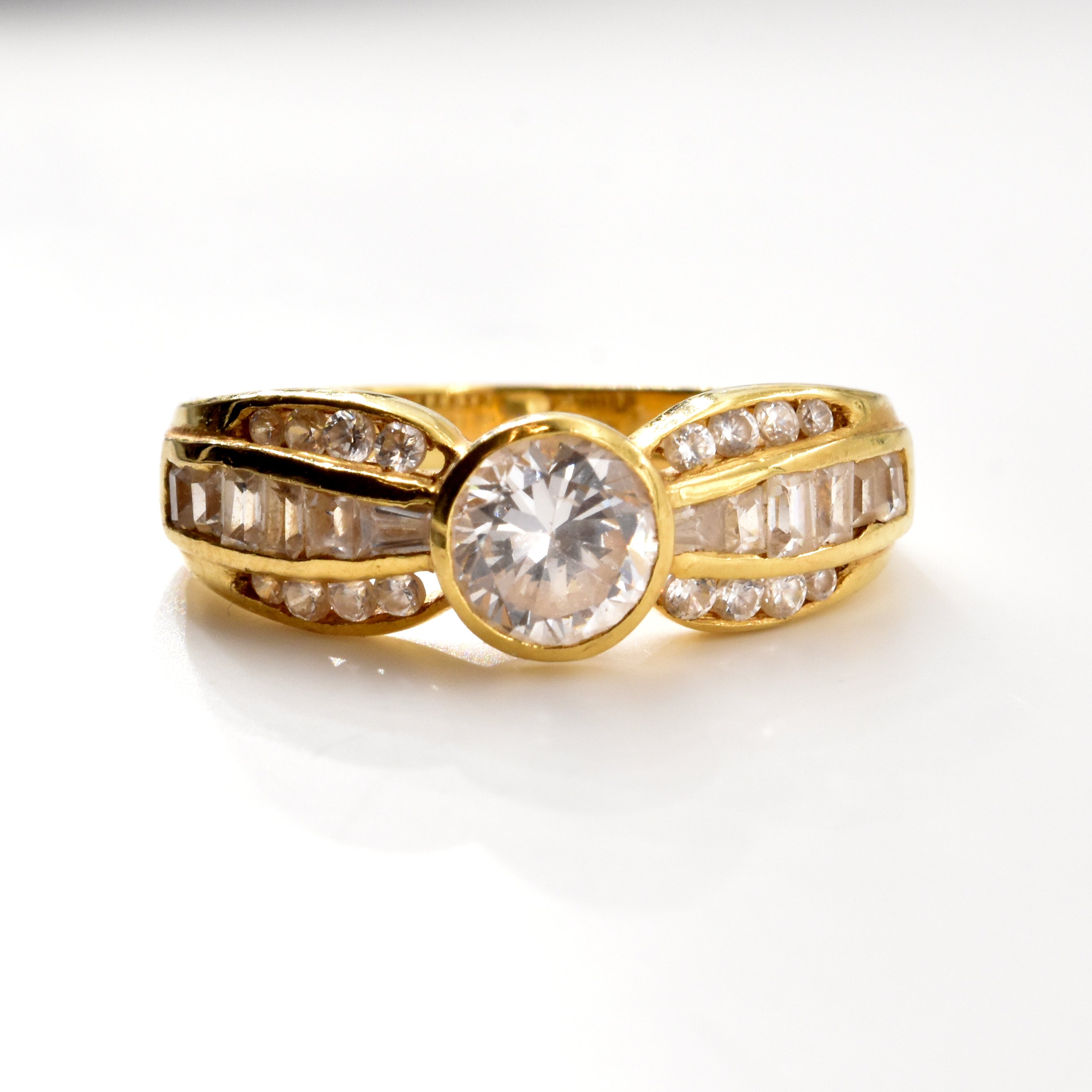 Bague en or jaune 18 ct (pierres fausses) - 6.2 g brut (Taille: 62)