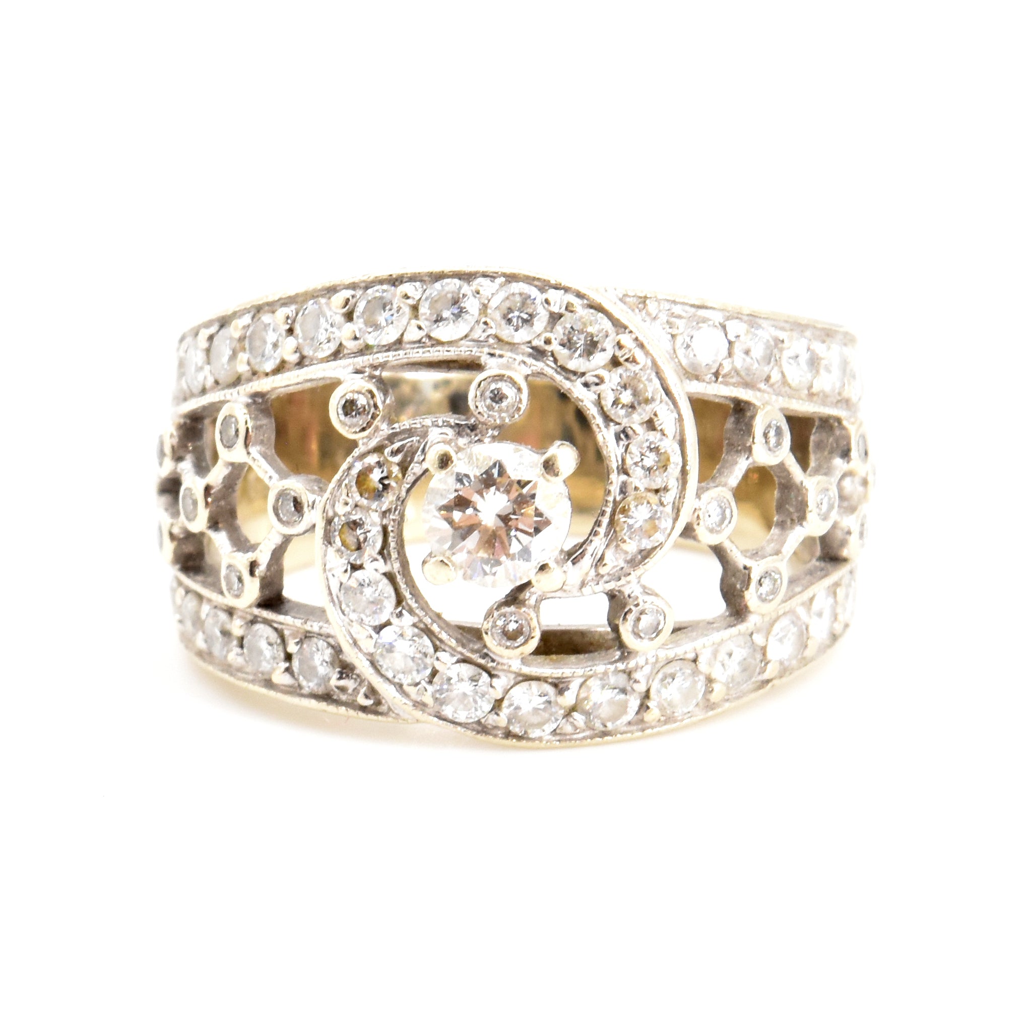 Bague en or blanc 14 ct sertie d'1 brillant central +/- 0.20 ct et 52 brillants +/- 0.70 ct - 6.7 g (Taille: 50)