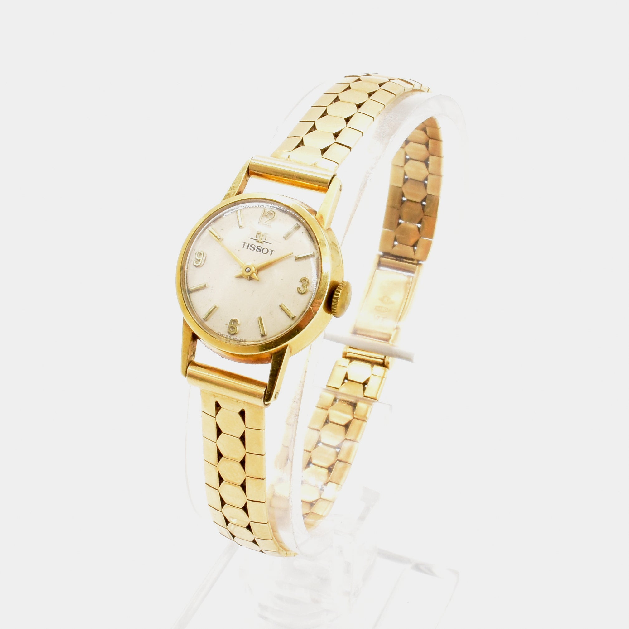Bracelet-montre dame en or jaune 18 ct TISSOT mécanique (verre griffé, bosselé) - 28.9 g brut (19 cm)